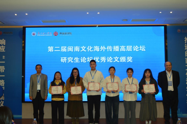 会议为研究生论坛设置了优秀论文奖,来自福建师范大学、华侨大学、闽南师范大学和我校的六位同学的论文获评“第二届闽南文化海外传播高层论坛暨首届研究生论坛优秀论文”。