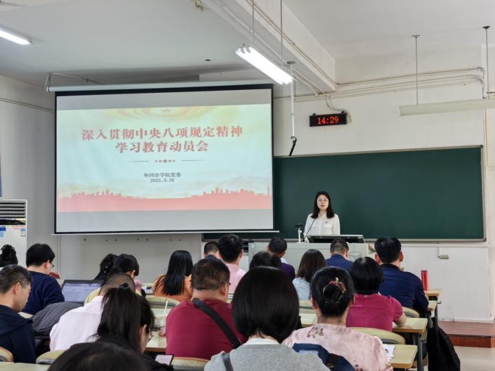 近日,外国语学院党委在明理8#307会议室召开深入贯彻中央八项规定精神学习教育动员大会。会议由学院党委负责人主持,全体师生党员参会。