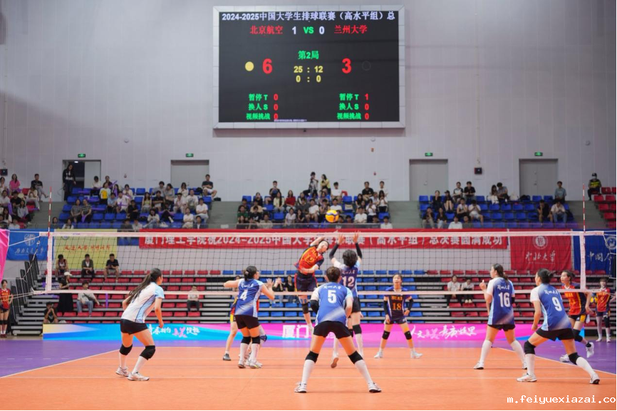 开幕式后,兰州大学与北京航空航天大学的较量打响揭幕战。比赛中,北京航空航天大学展现出强大实力,凭借凌厉的进攻与密不透风的防守,以3:0(25:12、25:20、25:20)的比分强势拿下首胜。比赛间隙,“东京奥运会、北京冬奥会、杭州亚运会”特邀DJ通过现场精心设置的局间互动环节,让观众在紧张观赛之余参与趣味活动,为赛事增添更多美好回忆。