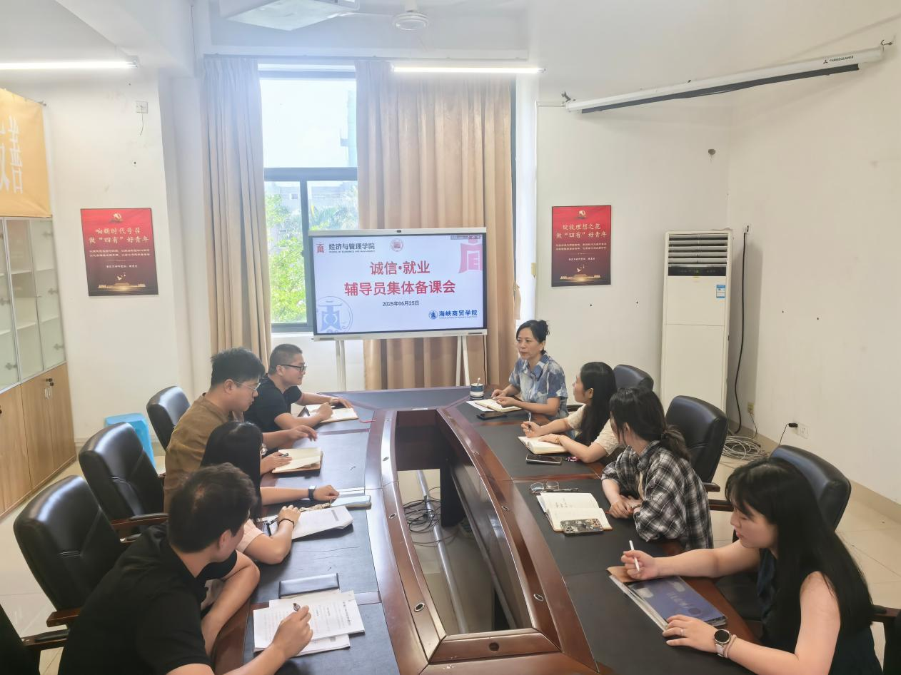为了更精准地对接学生成长需求,做好“关心·帮助·迎考”主题教育和学生就业指导服务等工作,6月25日,经济与管理学院(海峡商贸学院)组织召开"诚信·就业"专题辅导员集体备课会。学院党委副书记庄沪娟以及全体辅导员参加会议,就如何加强学生诚信教育、提升就业服务质量等问题展开深入研讨。
