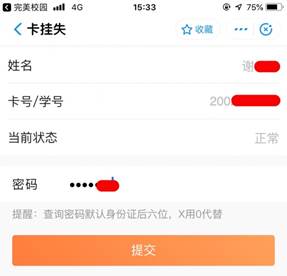 第二种方法:手机“完美校园”APP客户端挂失(自助挂失电话:6291296(密码为身份证后六位,字母用0代替))