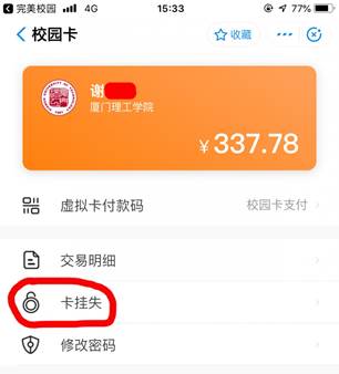 注意:校园卡有2个钱包,校内钱包和公交钱包,校内钱包卡丢失补办卡里的钱会自动转移到新卡,但公交充值部分,如果没有绑定厦门易通卡APP,那里面钱丢卡后不能找回,所以平时公交部分也厦门易通卡APP上进行身份绑定。